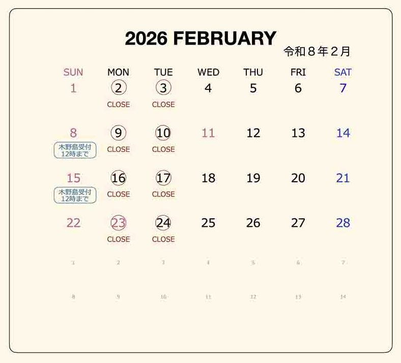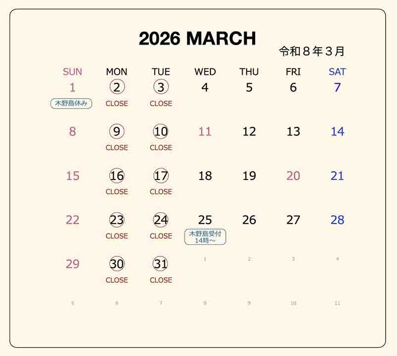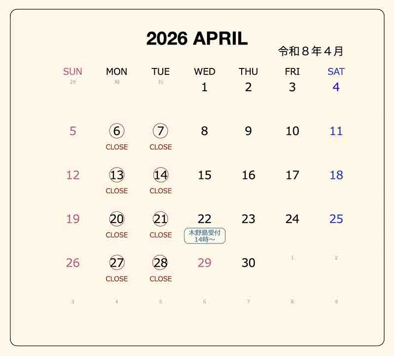 土日祝 / 9:30~18:30パーマ、カラー 17:00)